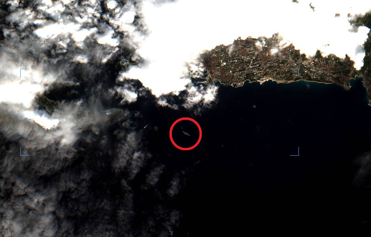 La gráfica, capturada por un satélite de la firma especializada en geolocalización EOS Data Analytics, muestra al portentoso buque de guerra en el mar Adriático, frente al puerto estatal de Gradska Luka, en la ciudad de Split.