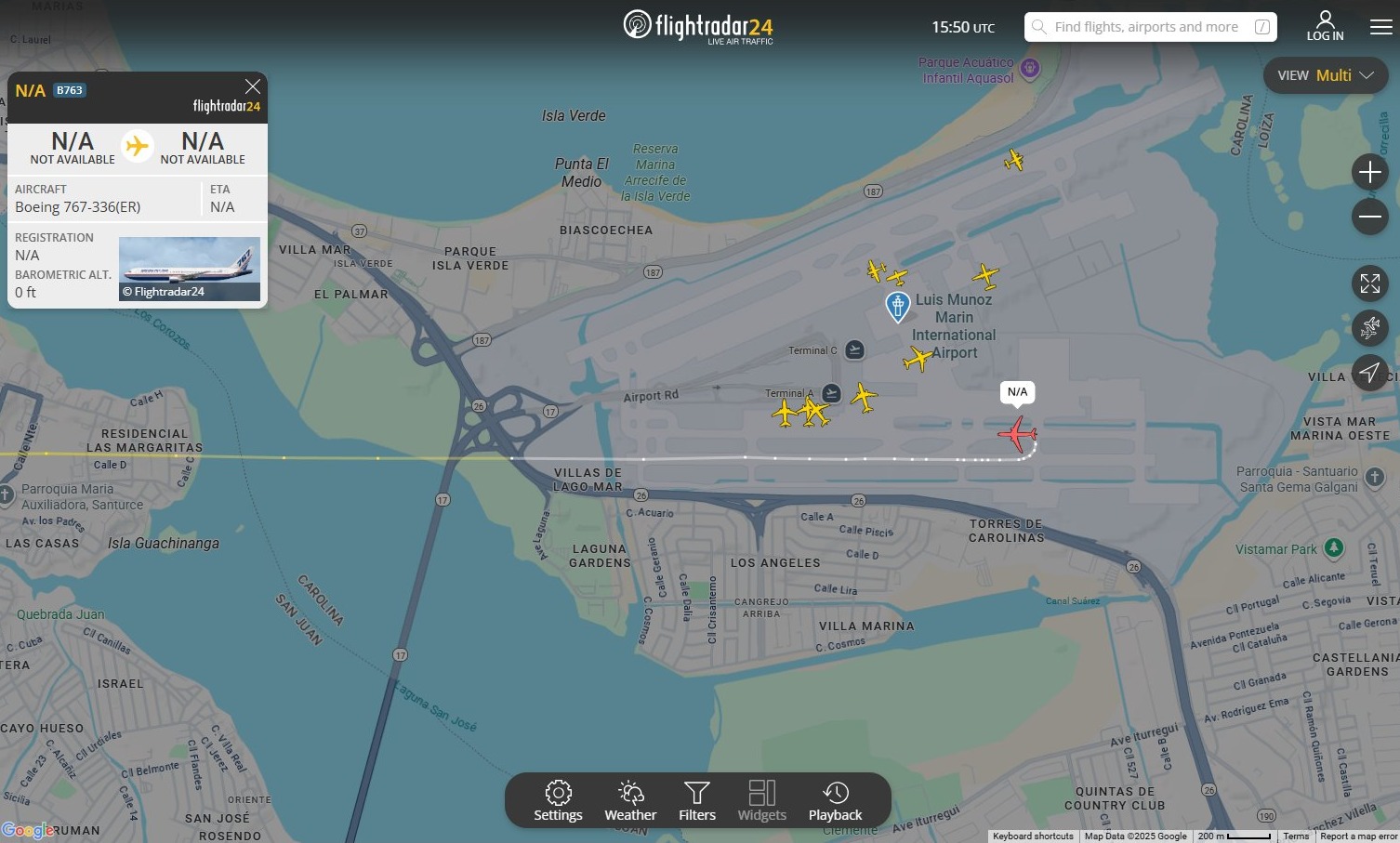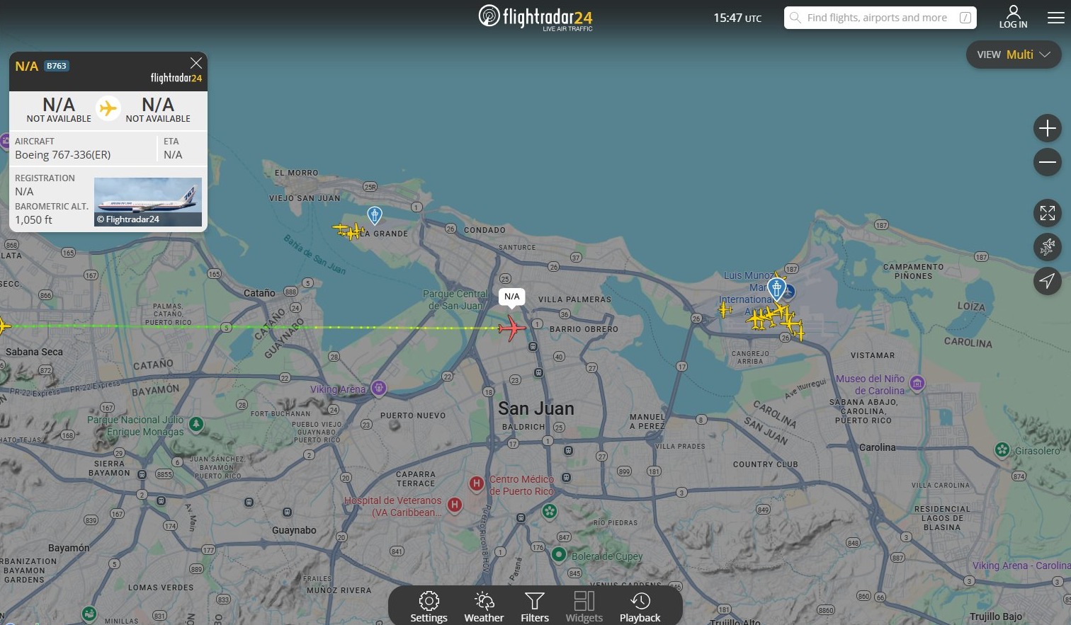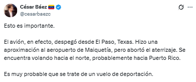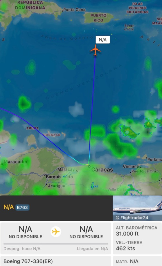 El rastreo muestra cómo la aeronave realizaba su aproximación a la costa venezolana. Alrededor de 11:47 a.m, el avión cambió su ruta, girando hacia el norte para dirigirse a San Juan, Puerto Rico.
