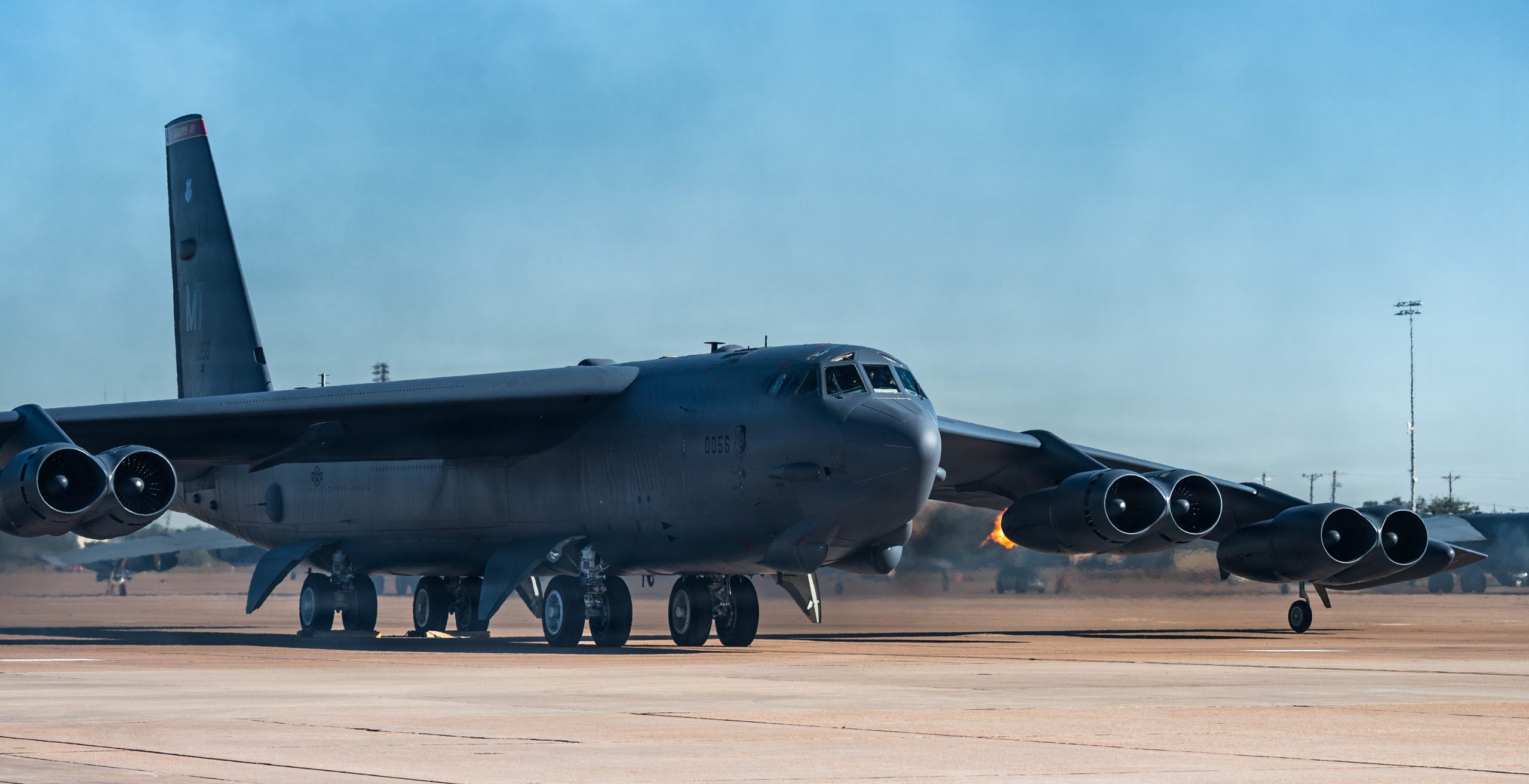 El bombardero B-52 s capaz de volar a altas velocidades subsónicas a altitudes de hasta 15 mil metros. Puede portar armamento convencional guiado de precisión o nuclear con capacidad de alcance a nivel mundial.