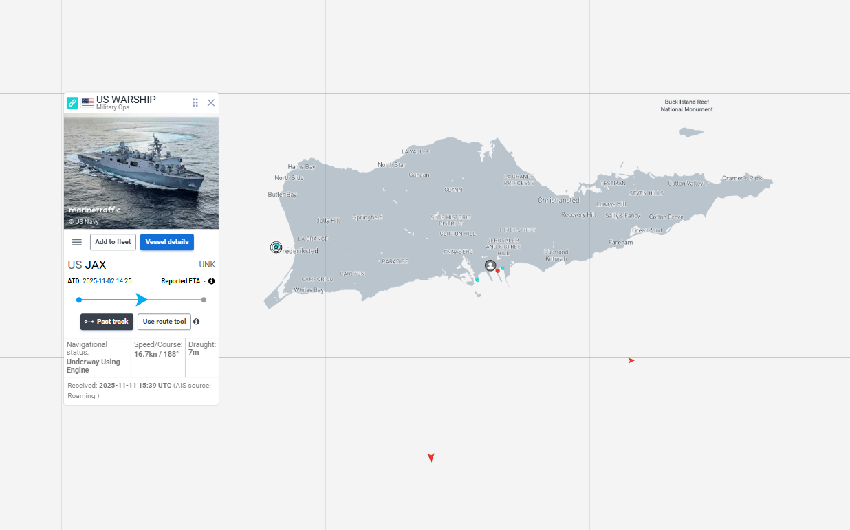El buque de asalto anfibio USS Fort Lauderdale (LPD-28) fue avistado este viernes a su llegada al puerto de Frederiksted, en St. Croix, Islas Vírgenes, donde recibirá un breve servicio de reabastecimiento para unirse de nuevo a la misión antinarcóticos en el mar Caribe.