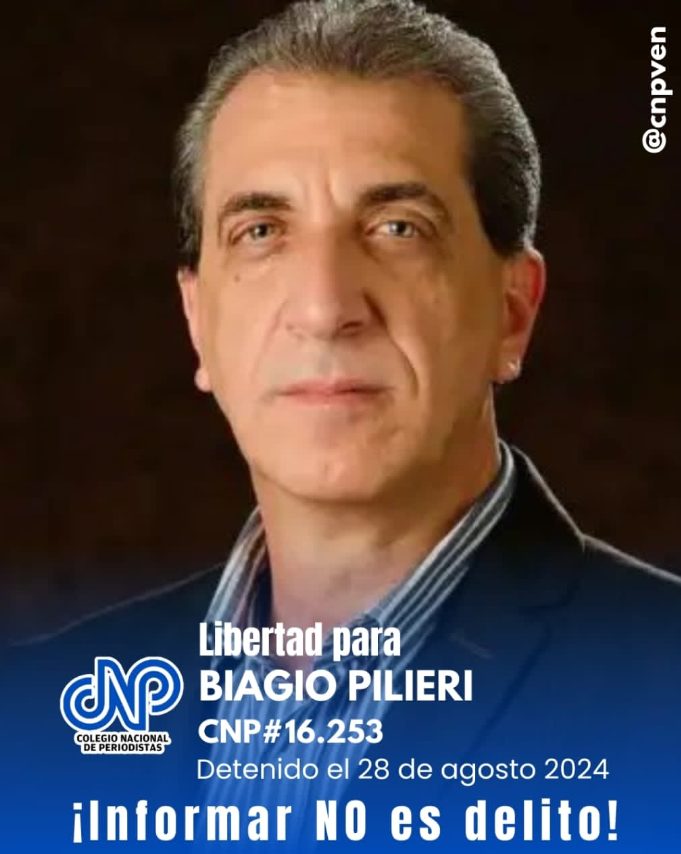 El Colegio Nacional de Periodistas (CNP) de Venezuela alertó sobre el «deterioro considerable» de la salud de Biagio Pilieri, dirigente opositor y comunicador social, quien este domingo cumple 16 meses encarcelado.