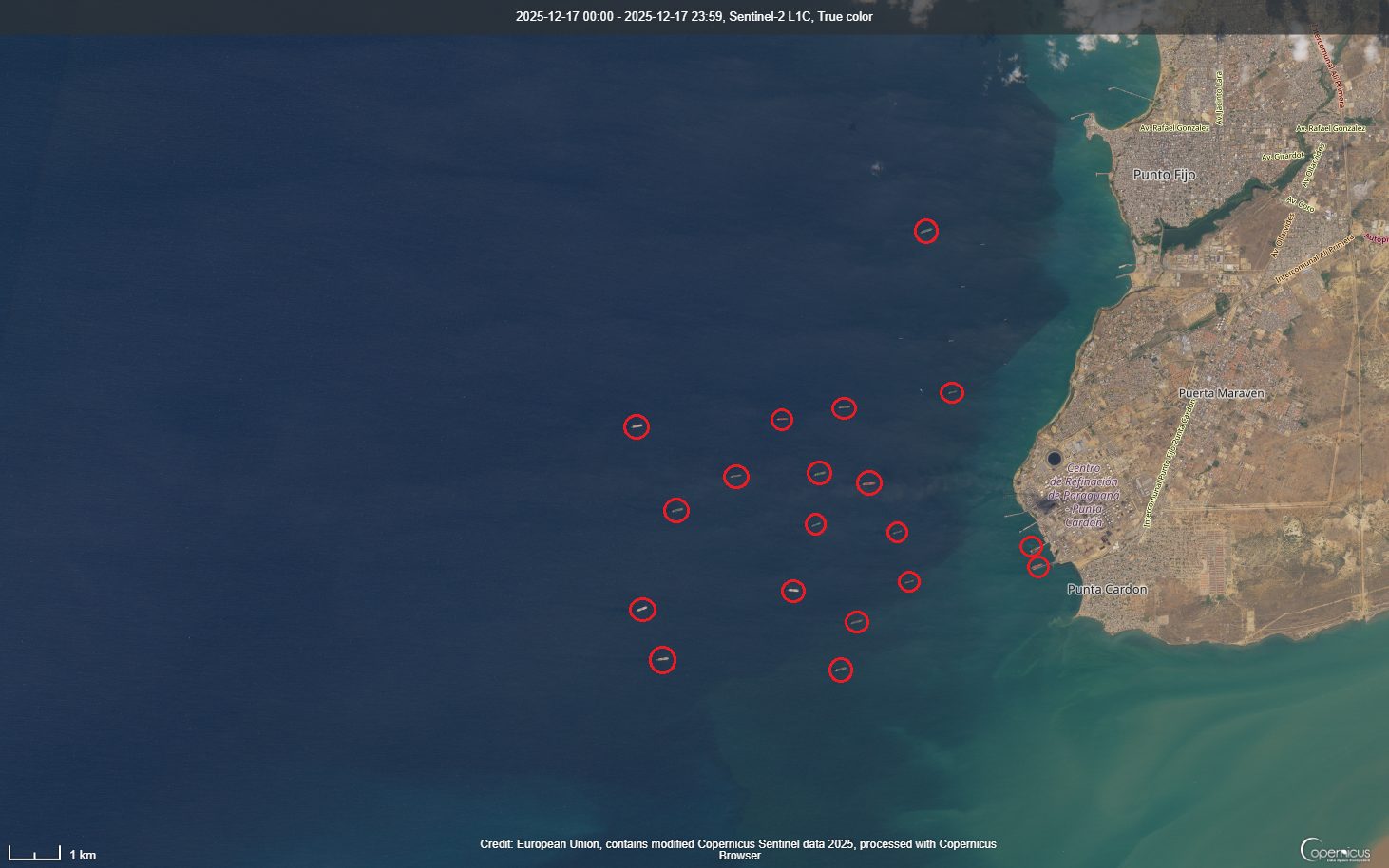 Fotografías capturadas recientemente por los satélites Copernicus Sentinel-2 de la Agencia Espacial Europea (ESA, por sus siglas en inglés) evidencian a decenas de tanqueros paralizados frente a los principales puertos administrados por Petróleos de Venezuela (Pdvsa).