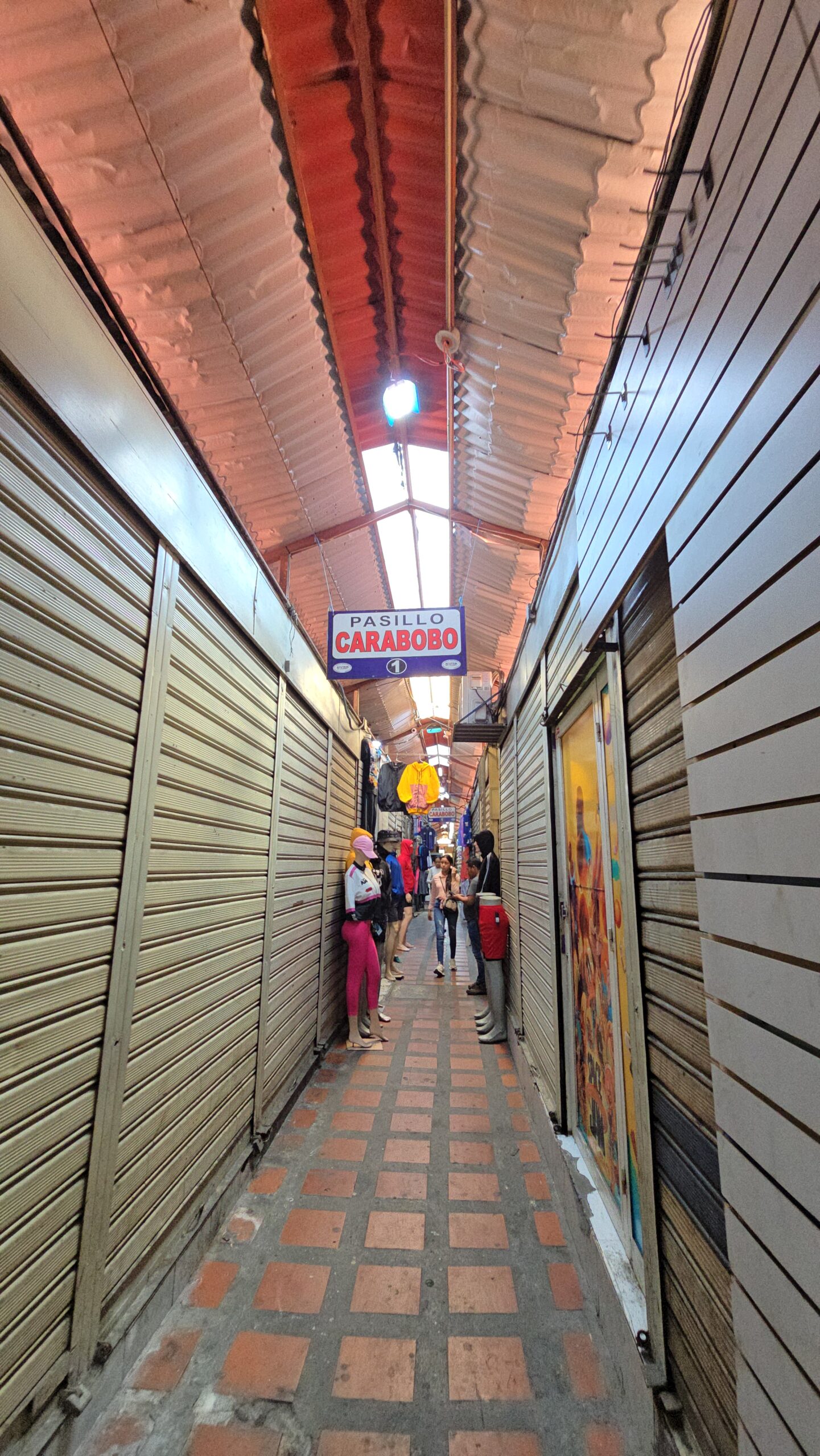 En los alrededores de la estructura principal del mercado, decenas de autobuses descansan como bestias de carga agotadas. Llegaron de madrugada, entre 3:30 y 4:00 am, trayendo a compradores del interior del país —de los llanos, del centro, de occidente— en una suerte de turismo de supervivencia comercial. Buscan la oferta mayorista, la prenda de dos dólares, el par de zapatos que aguante la caminata.