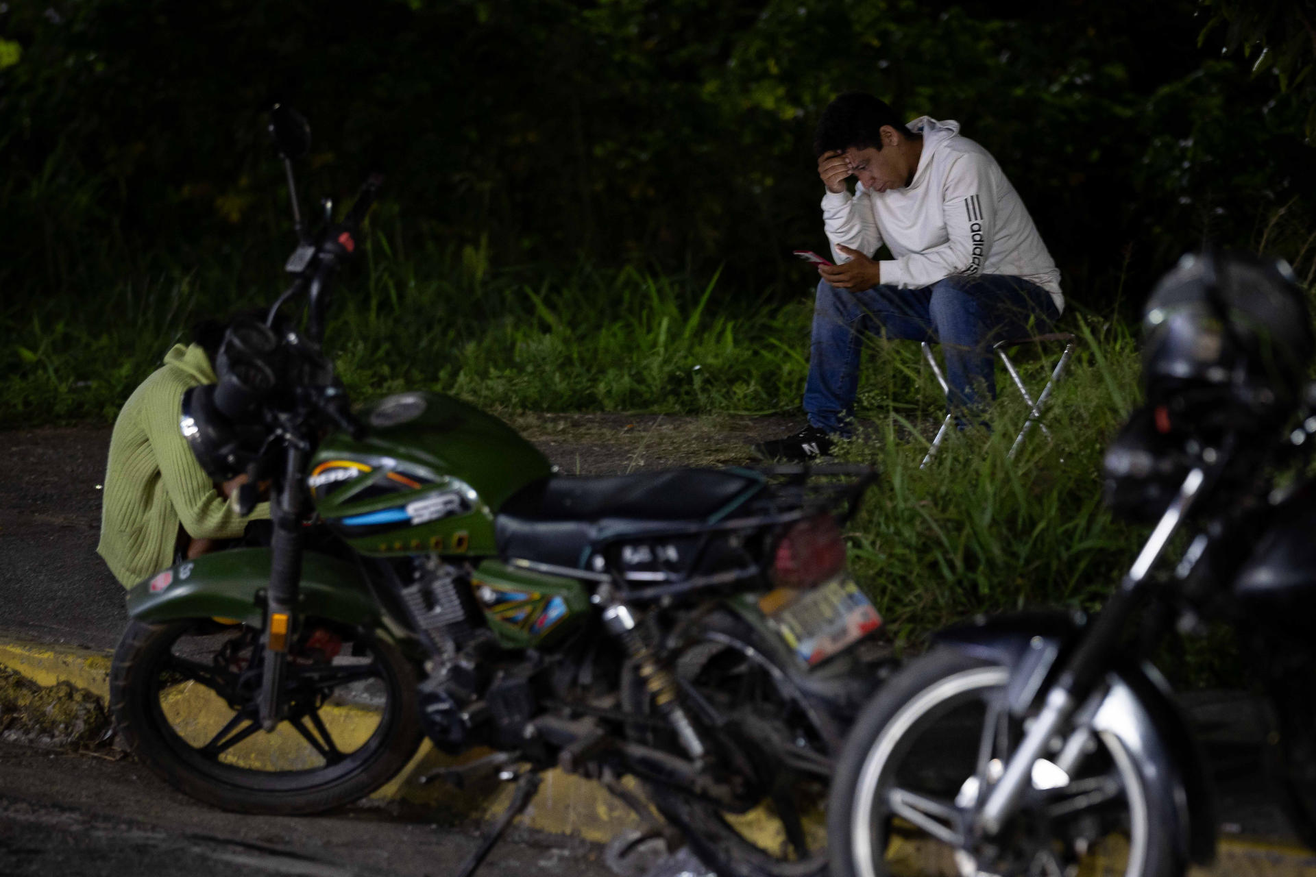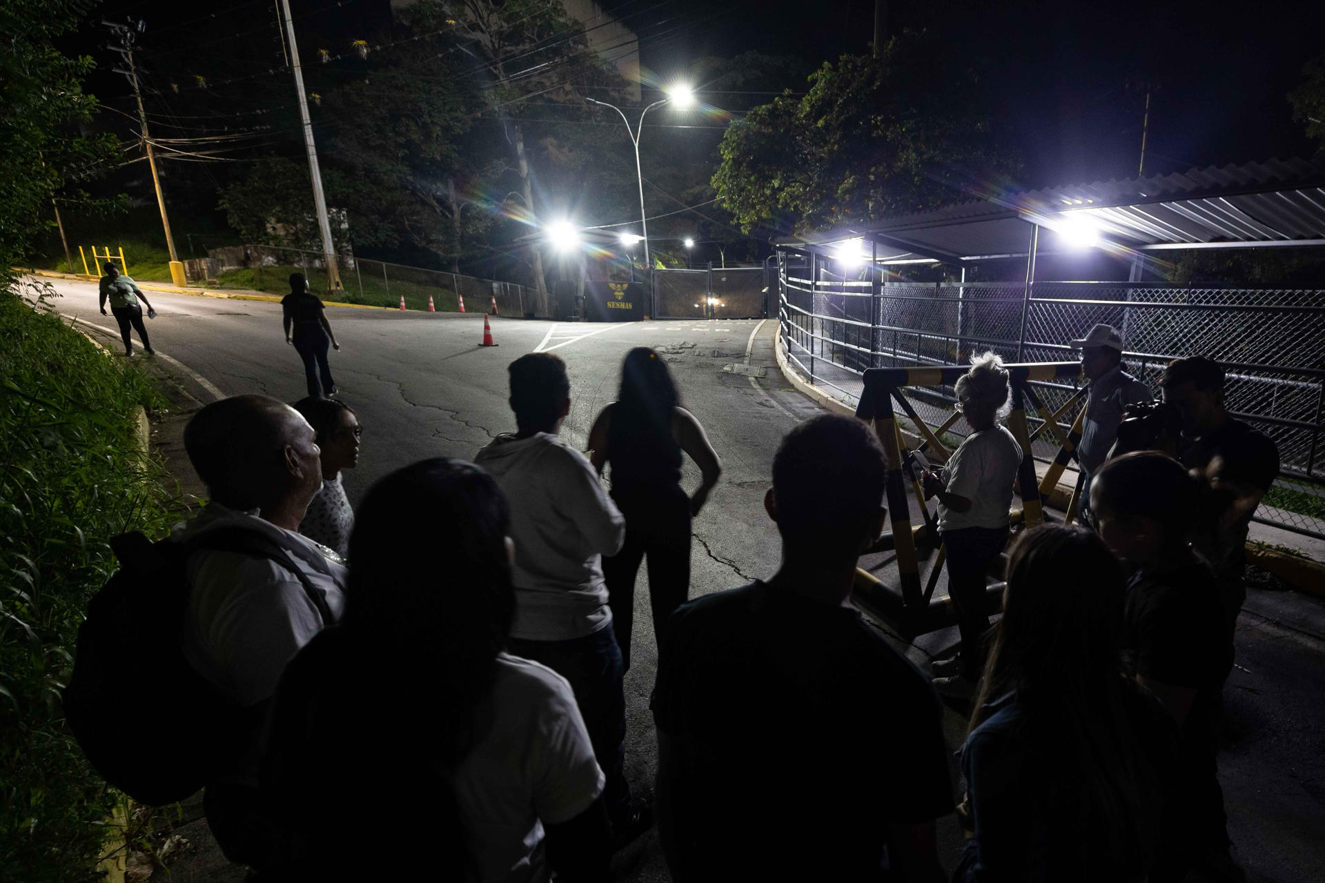 Personas participan en una vigilia frente al centro penitenciario Rodeo I este sábado, en Zamora estado de Miranda (Venezuela). Los familiares de los presos políticos en Venezuela se mantienen a la espera de excarcelaciones y a pesar del «desgaste físico y emocional» que aseguran sentir tras más de 48 horas de que las autoridades anunciaran la liberación de un «número importante» de estos detenidos. EFE/ Ronald Peña R