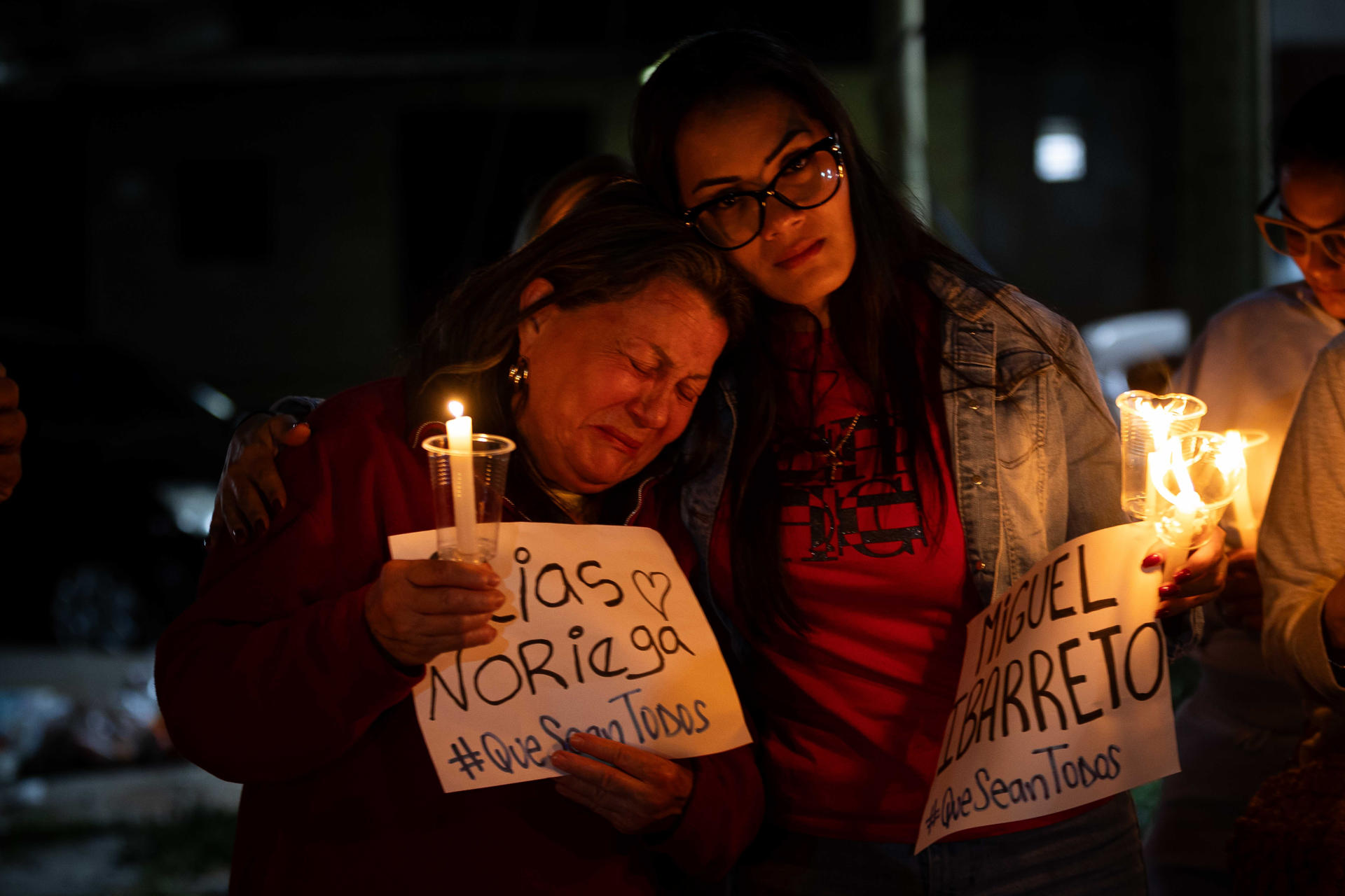 Horas antes, en la capital, familiares se concentraron en las adyacencias del Helicoide, sede del Servicio Bolivariano de Inteligencia (Sebin), donde escribieron nombres de presos políticos en papeles y encendieron velas, además de que cantaron el himno venezolano.