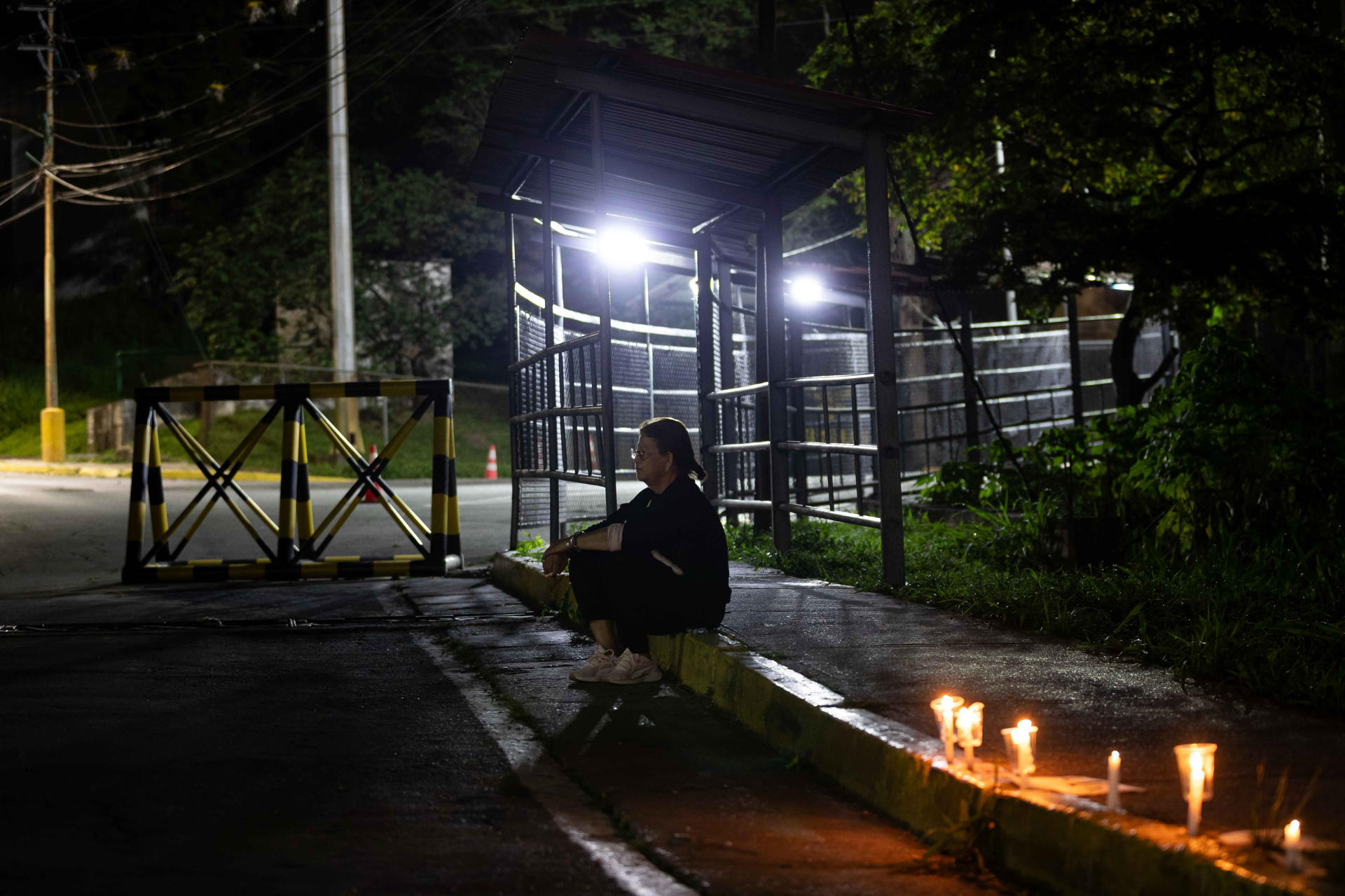 Una persona participa en una vigilia frente al centro penitenciario Rodeo I este sábado, en Zamora estado de Miranda (Venezuela). Los familiares de los presos políticos en Venezuela se mantienen a la espera de excarcelaciones y a pesar del «desgaste físico y emocional» que aseguran sentir tras más de 48 horas de que las autoridades anunciaran la liberación de un «número importante» de estos detenidos. EFE/ Ronald Peña R