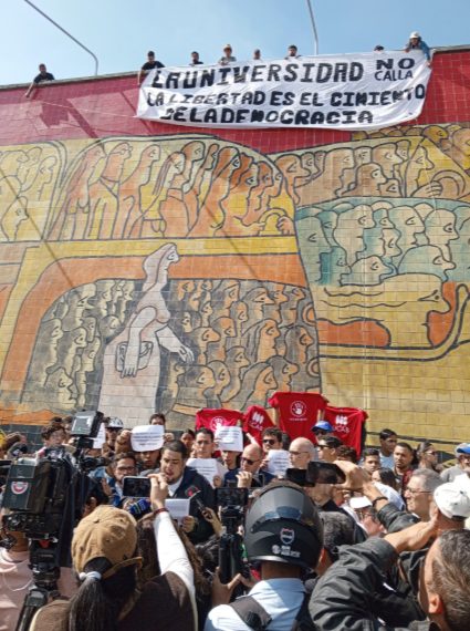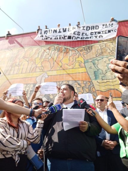 Gremios sindicales y movimientos estudiantiles de la Universidad Central de Venezuela (UCV) se concentraron este viernes frente al mural de Zapata, en la autopista Francisco Fajado en Caracas.
