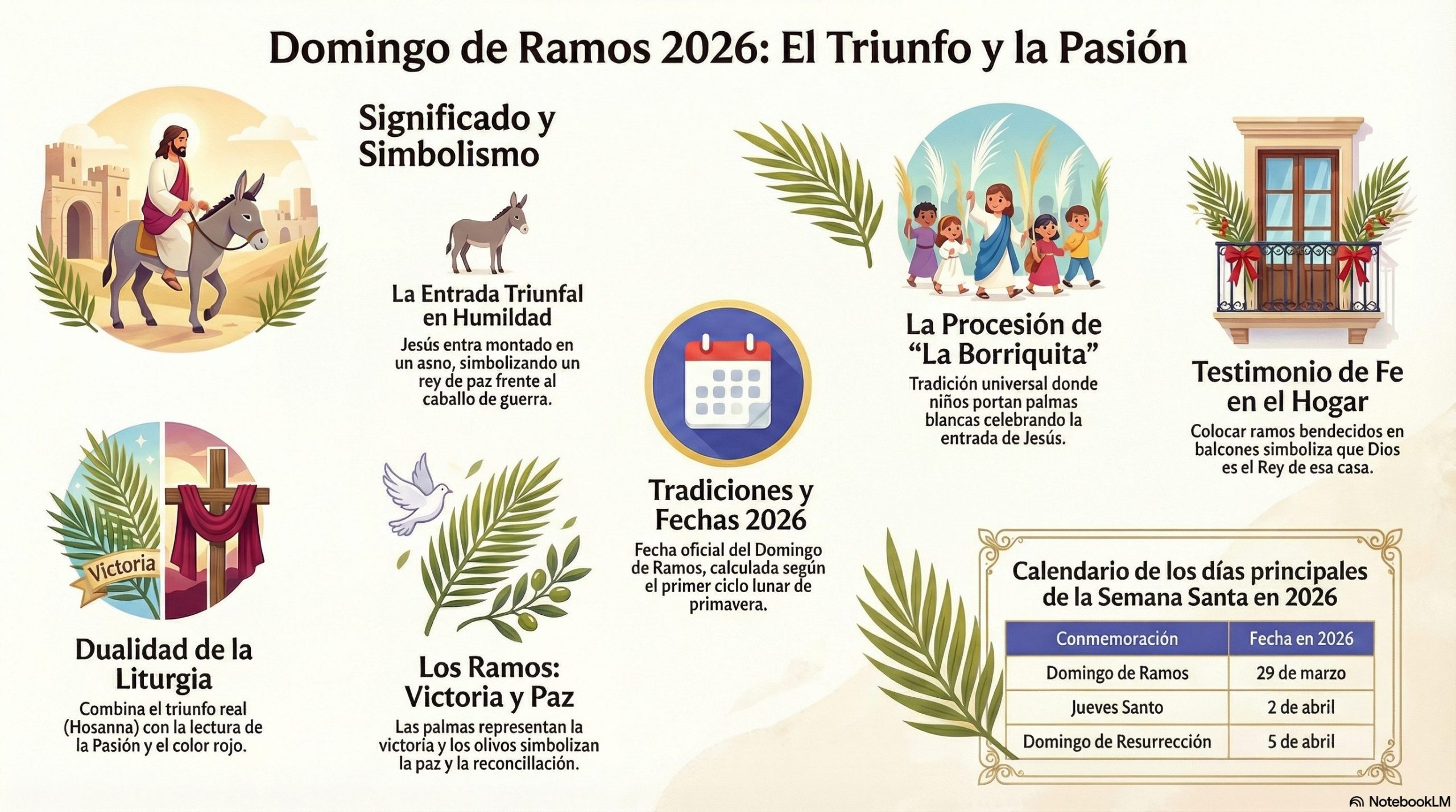 Simbolismo del asno: A diferencia de un caballo, que representaba la guerra, el asno simbolizaba que Jesús llegaba como un Rey de la Paz.