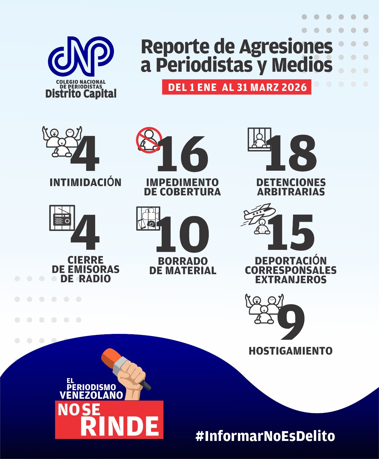 El Colegio Nacional de Periodistas (CNP), Seccional Distrito Capital, presentó su balance actualizado sobre la situación de la libertad de expresión en Venezuela, alertando sobre la consolidación de mecanismos de control que asfixian el ejercicio profesional. Según el gremio, el uso del sistema de justicia se ha transformado en una herramienta de hostigamiento silencioso que busca paralizar la labor informativa.